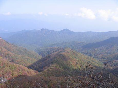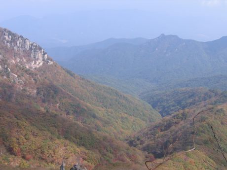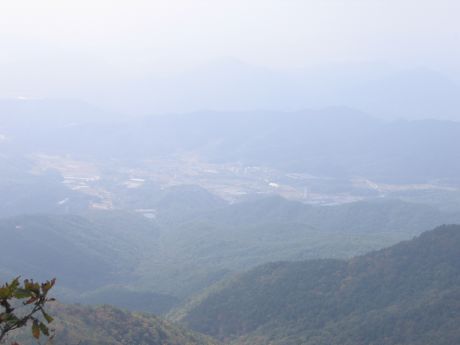 팔공산의 정상 동봉에서 아래로 구비구비 펼쳐진 계곡들을 내려다 본다.