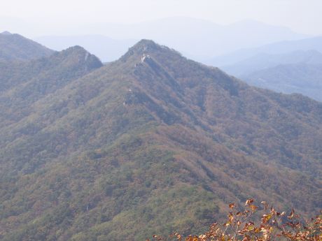 위로 보이는 두개의 봉우리 중
