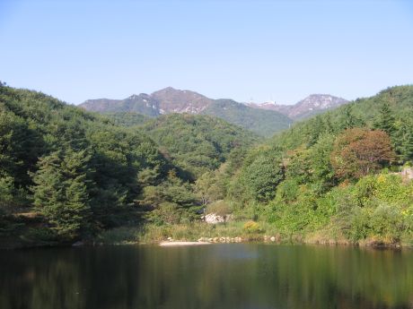 수태골 연못.. 하산하여 다시금 동봉과 서봉을 바라본다.